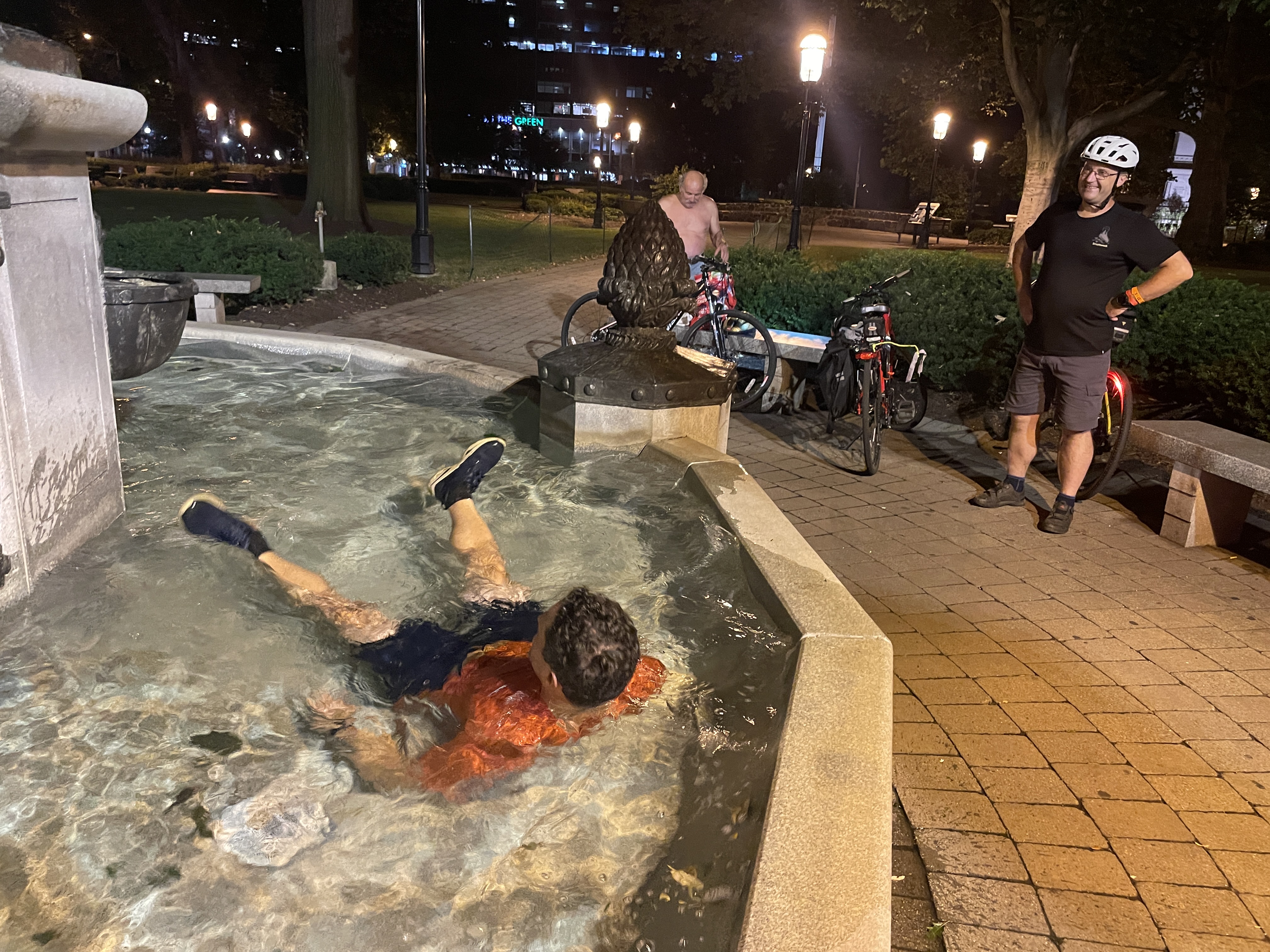 Ride Recap: 8 of us lifetime members braved the the heat and threat of t-storms to experience another fireworks display. The t-storms were a reality but thankfully it was short lived and cooled us off. We munched on expensive carnival food and downed some beers while being entertained by an Elvis impersonator band. The fireworks did not disappoint. The ride back was filled with great conversation, quiet back roads and watching a few take a dip at the fountain. Always a great time at the Berkeley Heights Fireworks Ride. See you next year. Here are a few pics.