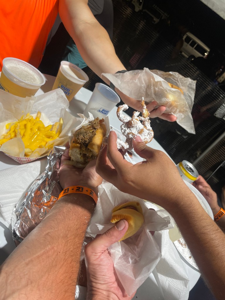 Ride Recap: 4 of us went out and braved the weather on the hot, humid July night. Taking shelter in the parking garage set the stage for a cool ride into Berkeley Heights. It was great hanging out with cheesesteak, cheese fries, funnel cake, hot dogs and beers. Turns out we were having such a good time that we didn’t realize the drone show was cancelled. Oh well, better luck next year. Ride back was awesome. I don’t think one car passed us in the heart of the Great Swamp. Here are some pics. See ya on the next ride. Ahwoooo!